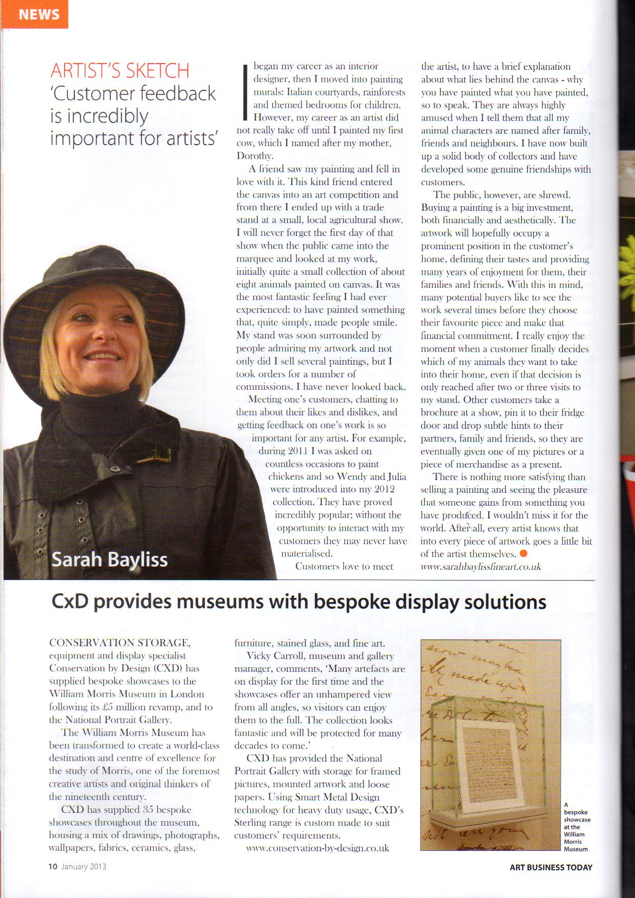 Sarah Bayliss shares her story as an artist in the her fifth guest article in the Fine Art Trade Guild Magazine. You can view this press item attachment by clicking here.