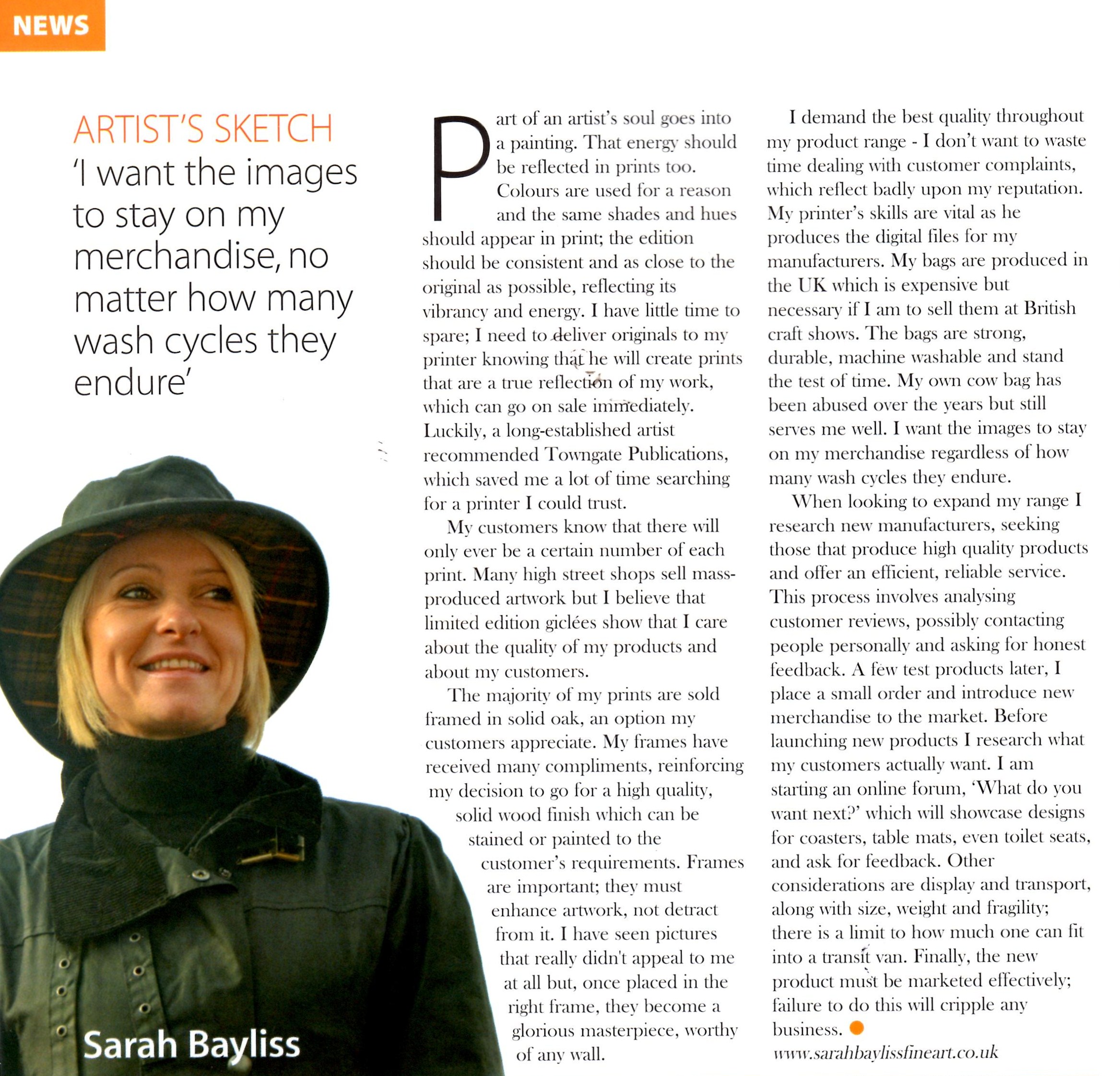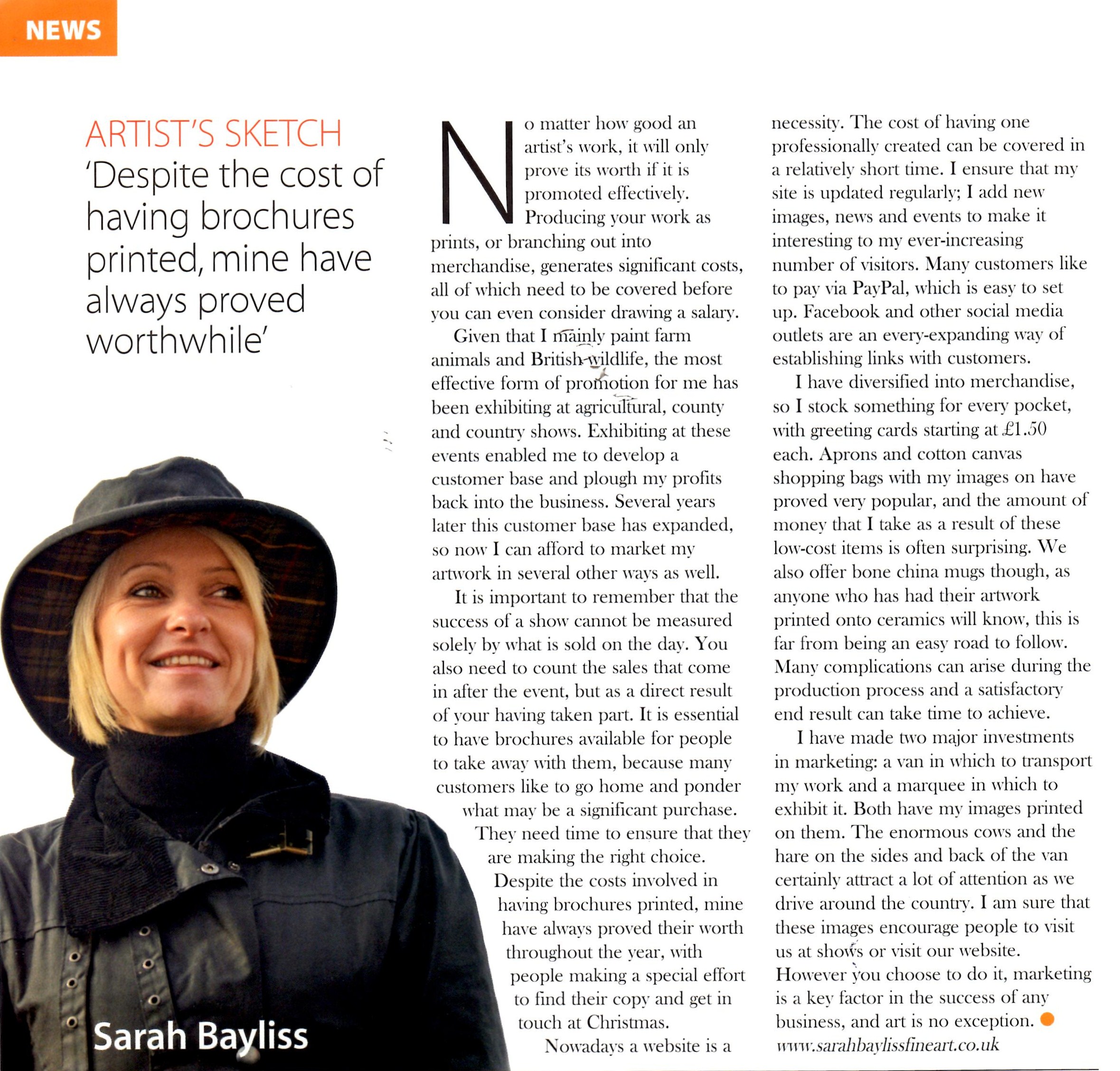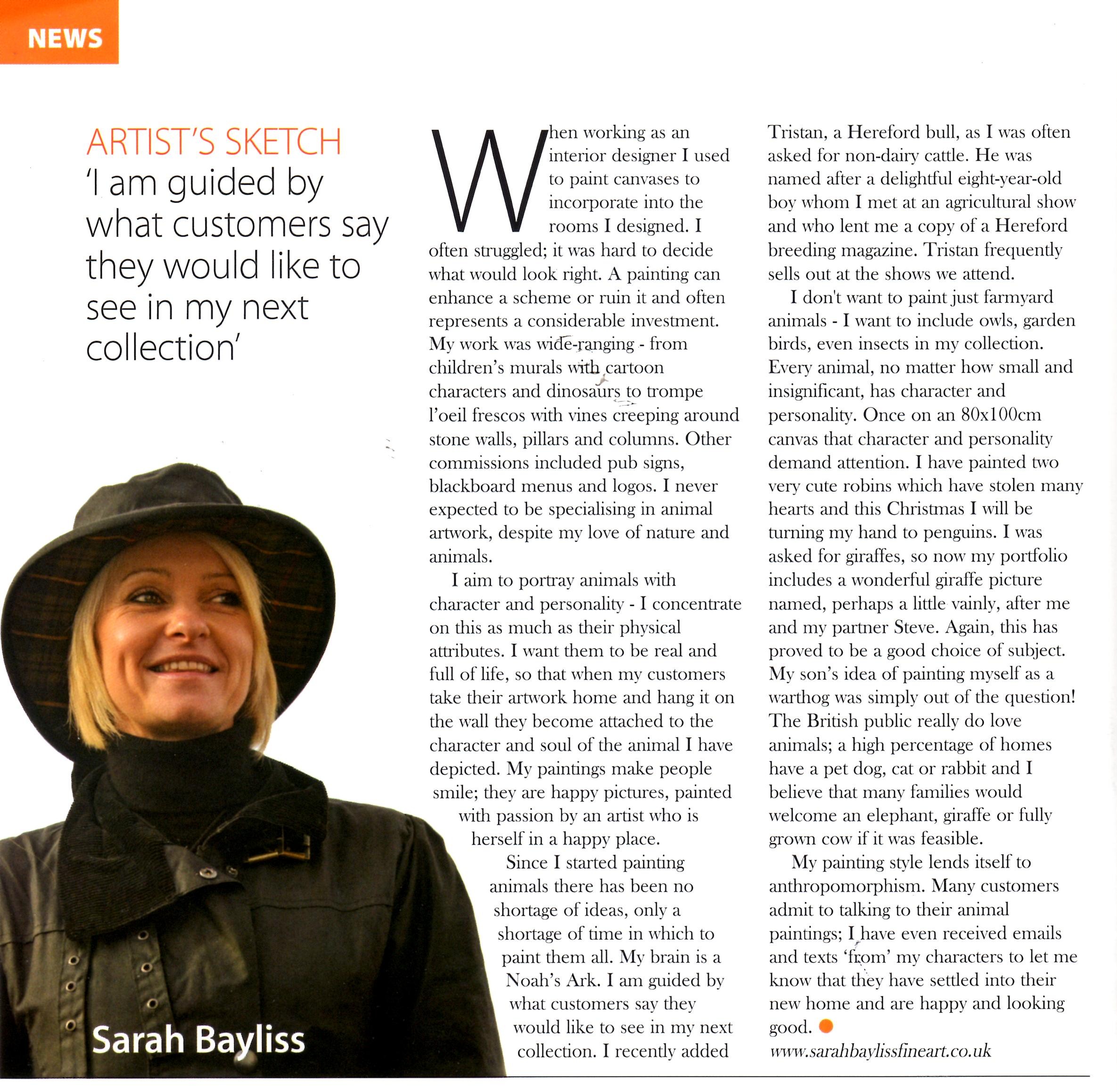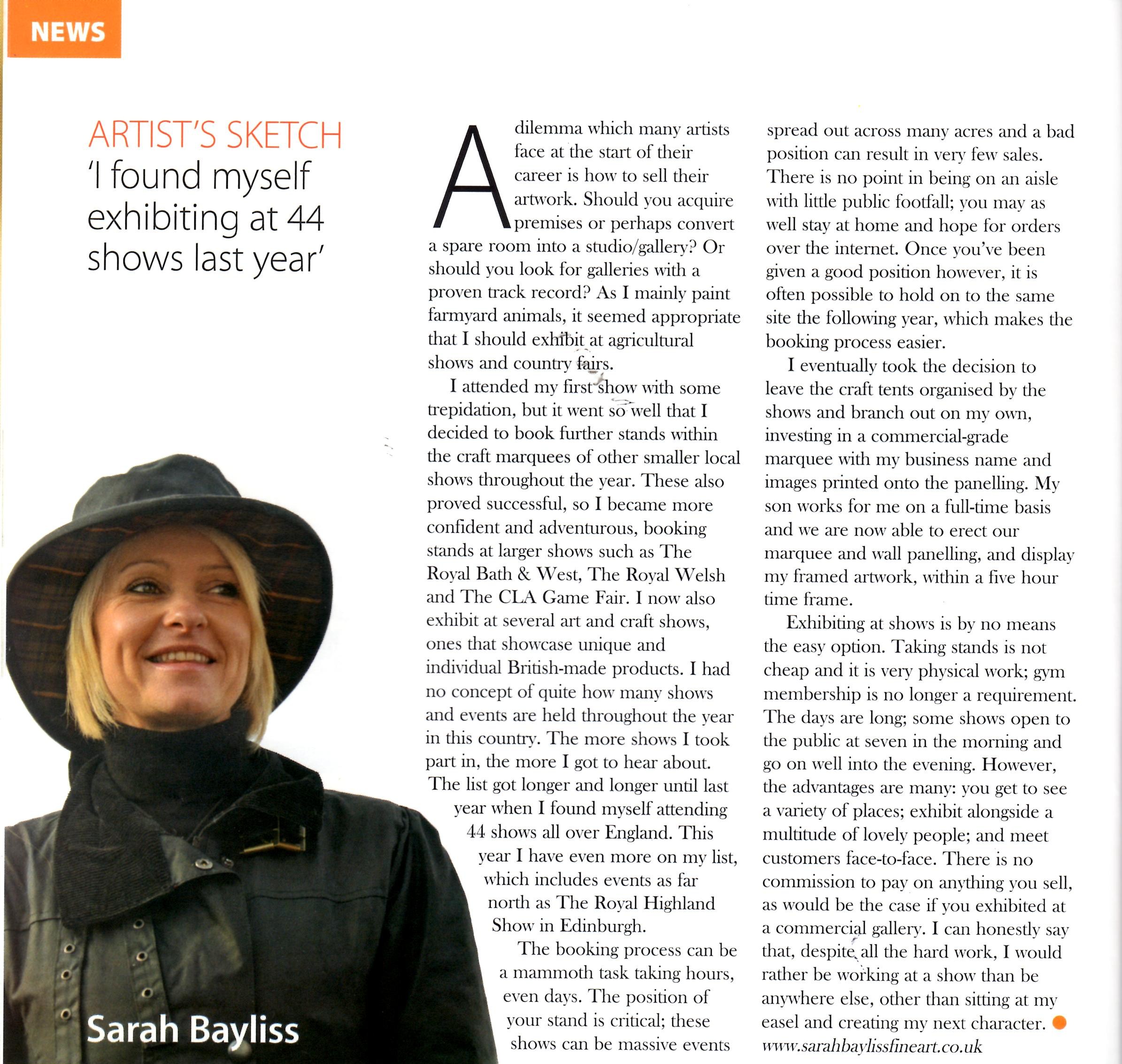 Sarah Bayliss shares her story as an artist in the her fourth guest article in the Fine Art Trade Guild Magazine. You can view this press item attachment by clicking here.